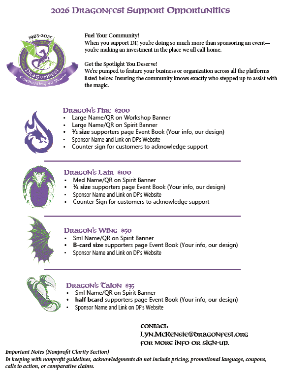 DRAGONFEST SUPPORTER OPPORTUNITIES